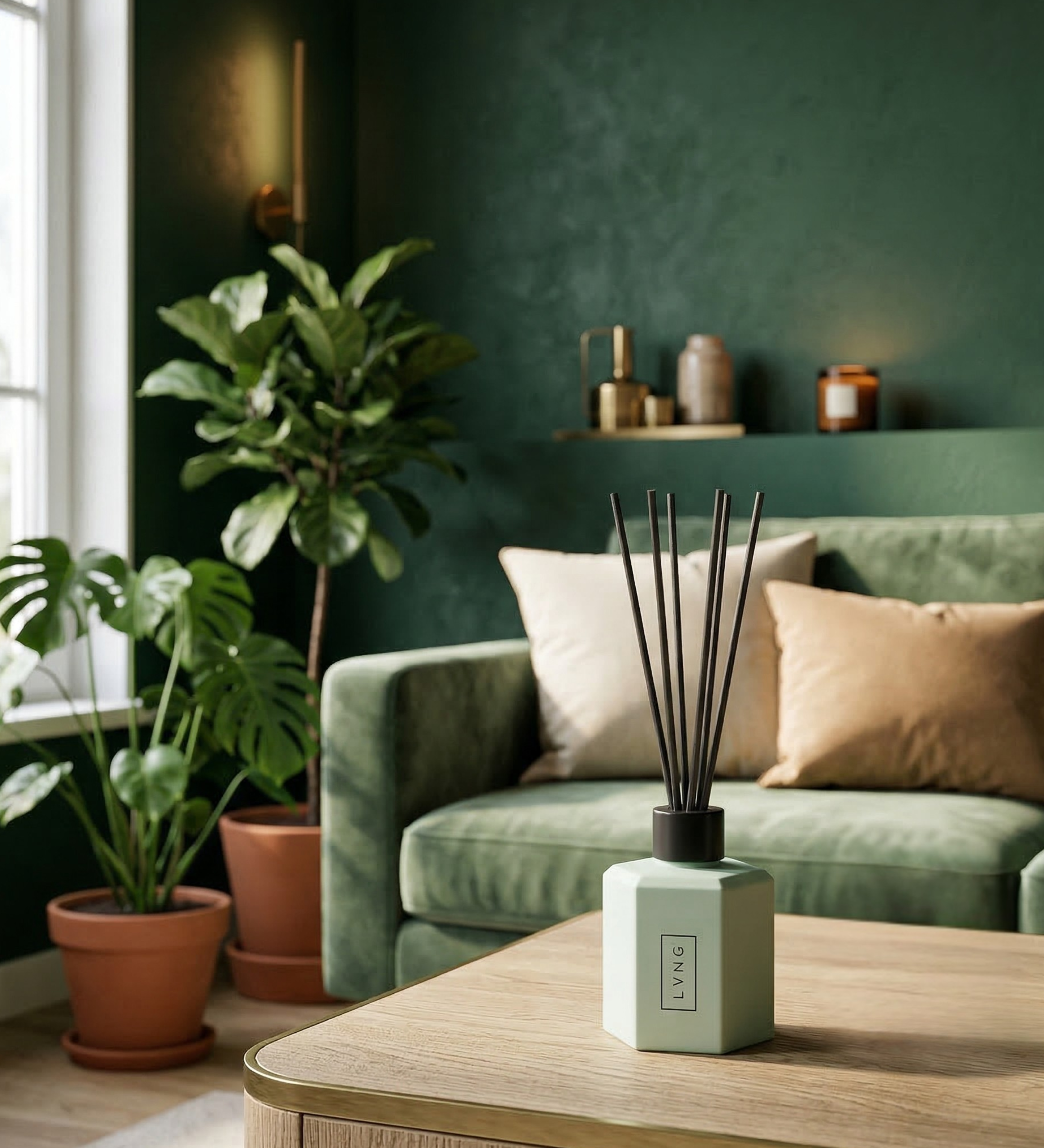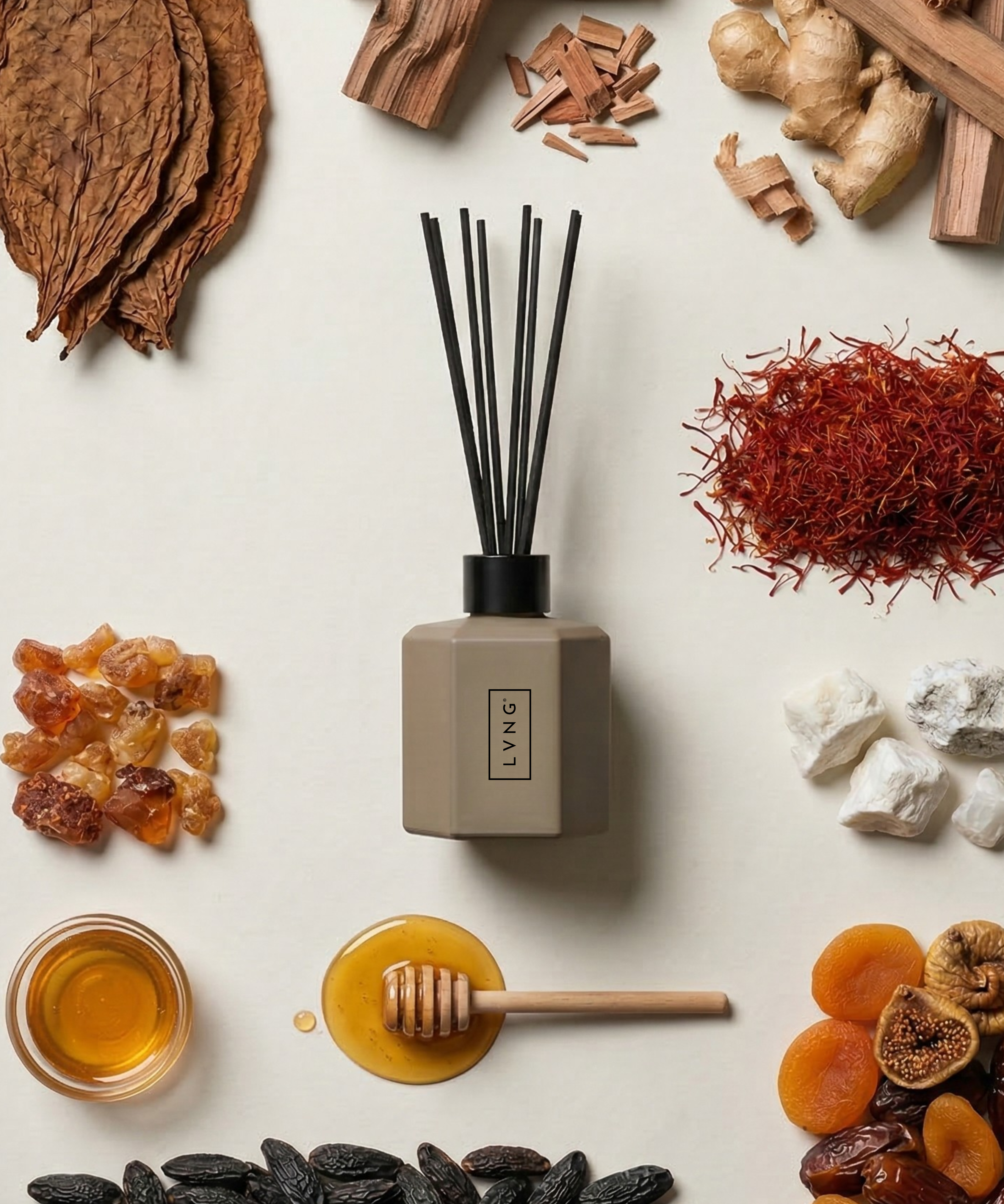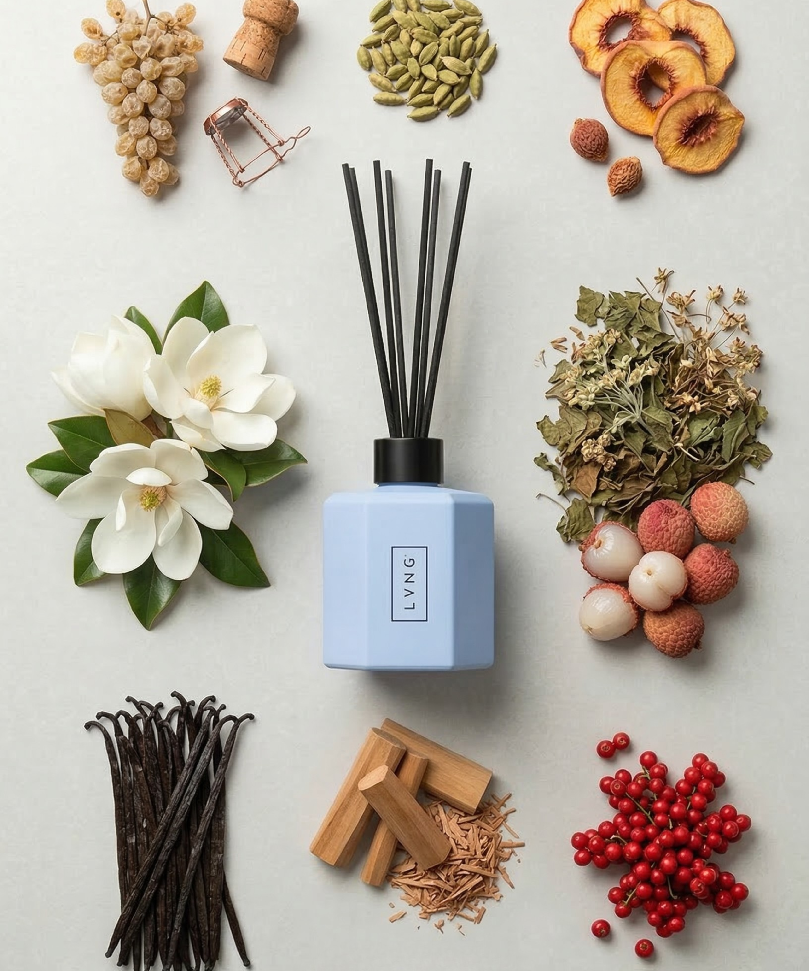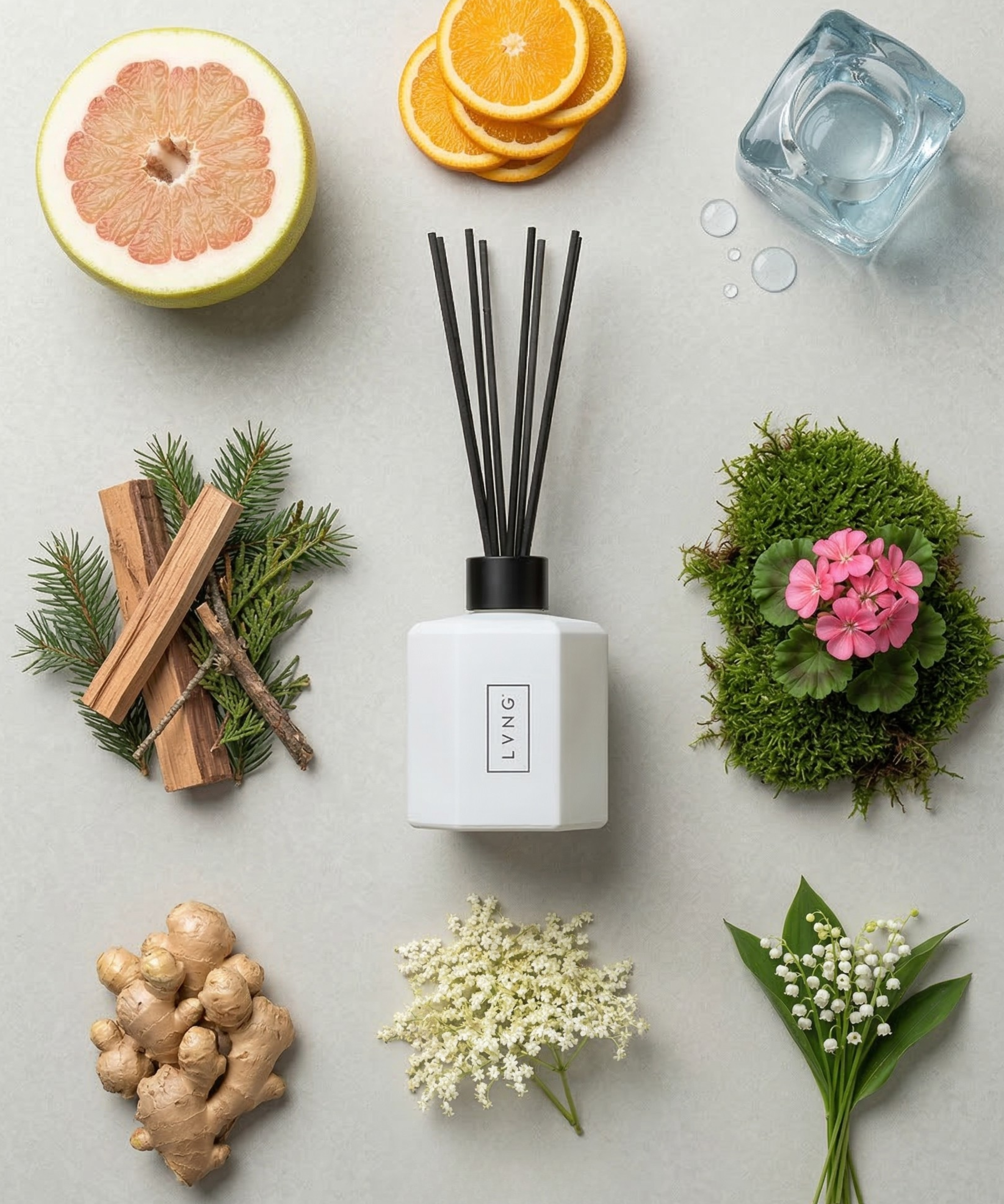 geur in ieder verzorgings- en schoonmaakproduct, zodat alle geuren in huis worden verenigd tot één geureenheid. Steeds bewust kiezend voor natuurlijke ingrediënten, recyclebare grondstoffen en verantwoorde productie. Een no-nonsense attitude die ervoor zorgt dat een LVNG-product een toegevoegde waarde vormt in elk interieur en een minimale impact heeft op het milieu. Ongekunsteld, waardoor alleen het essentiële overblijft en er ruimte is voor dat wat er echt toe doet.