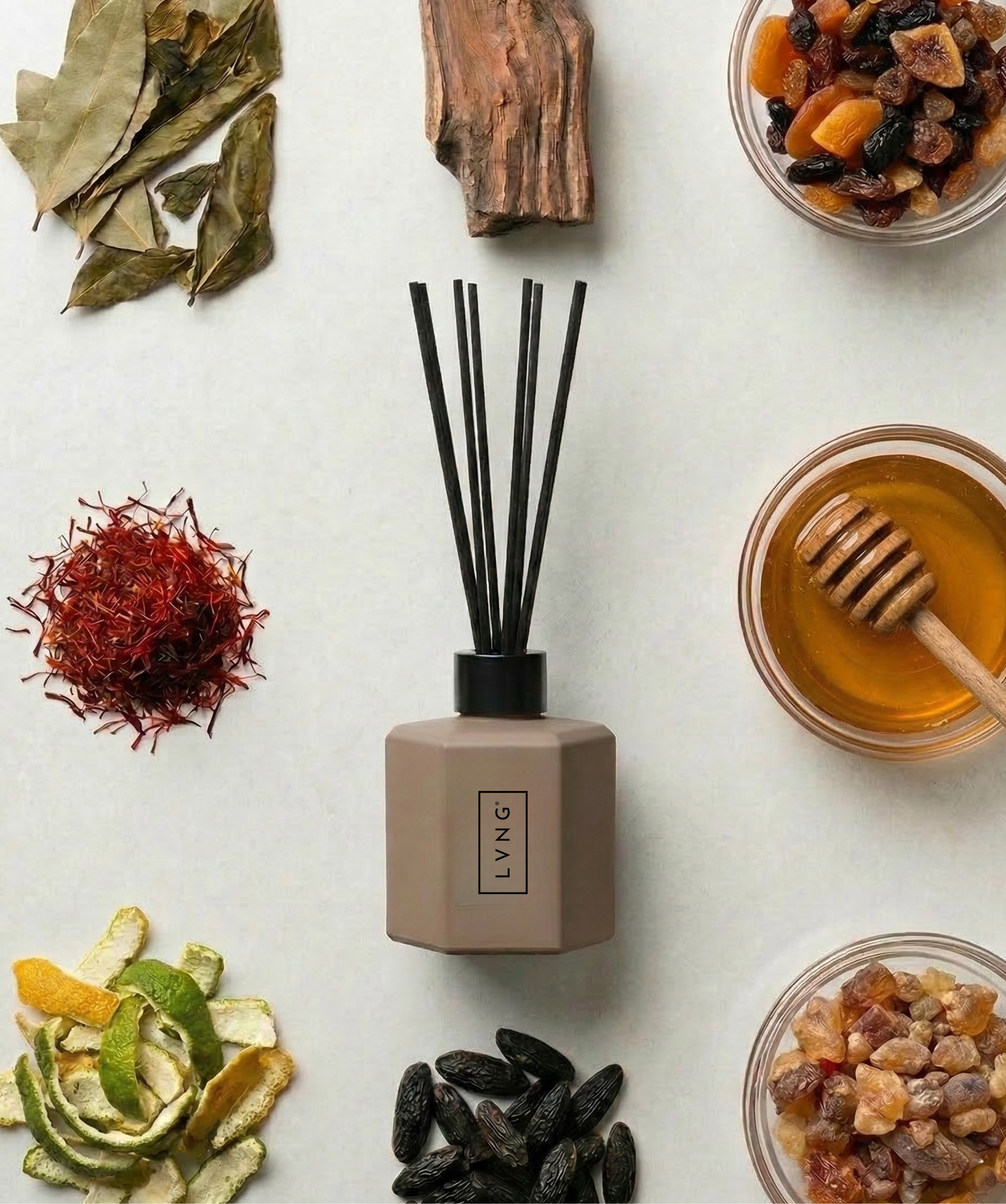 De LVNG Home Diffuser Casablanca is een luxe geurstokjes diffuser die langdurig een warme en verfijnde geur verspreidt. De combinatie van saffraan, cederhout en zoete ambertonen zorgt voor een uitnodigende en elegante sfeer in elke ruimte.